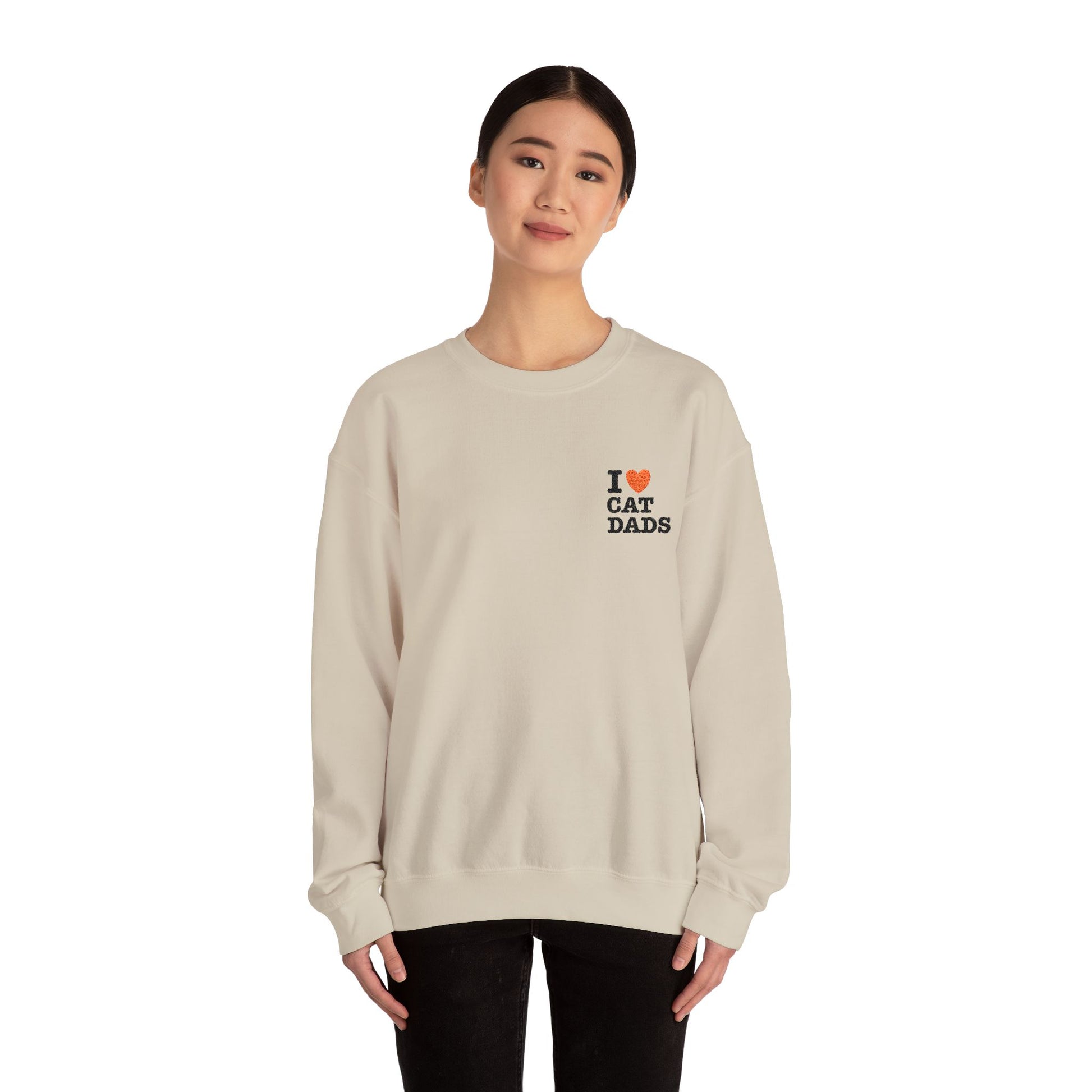 I Love Cat Dads Sweatshirt – cozy comfort with a bold cat-loving statement.