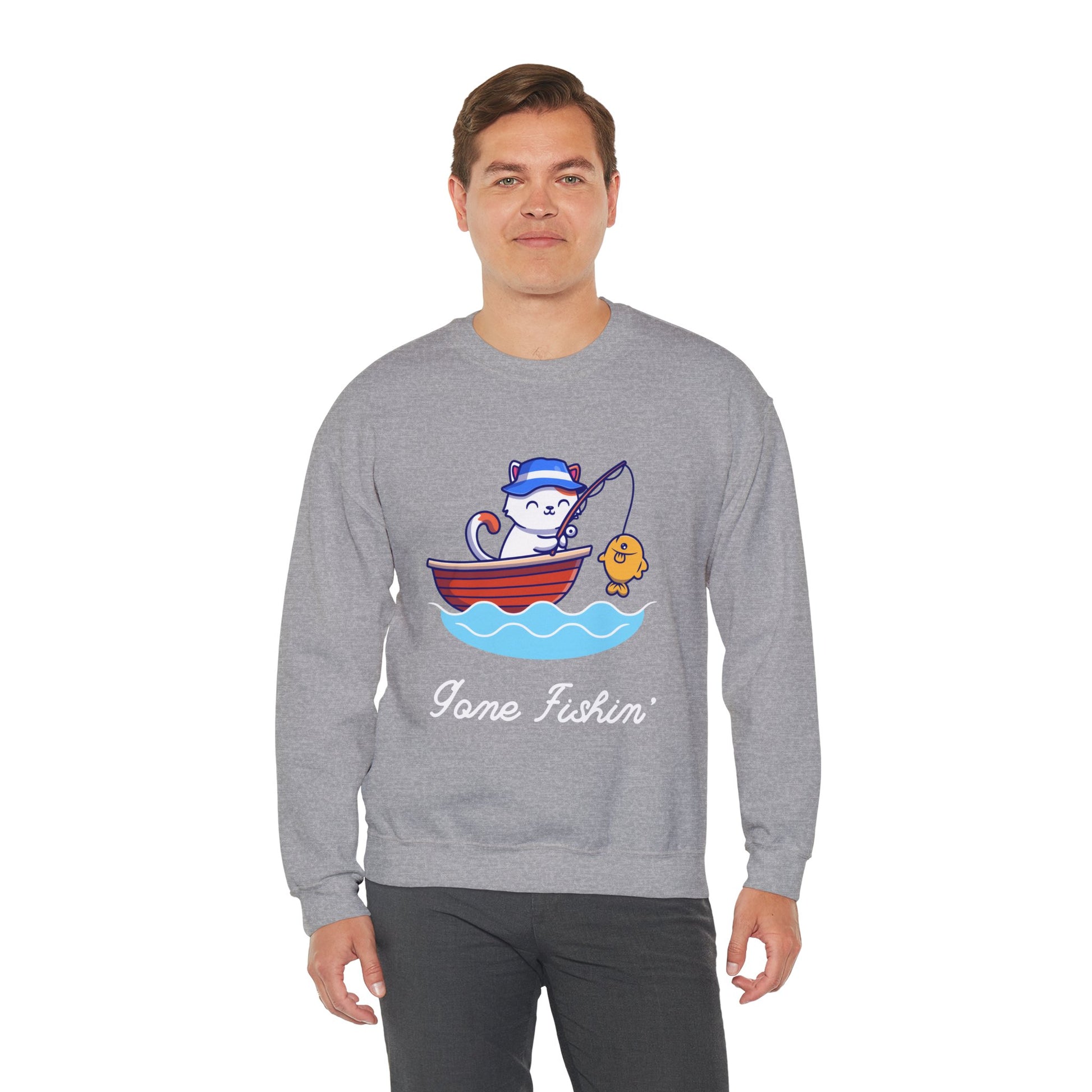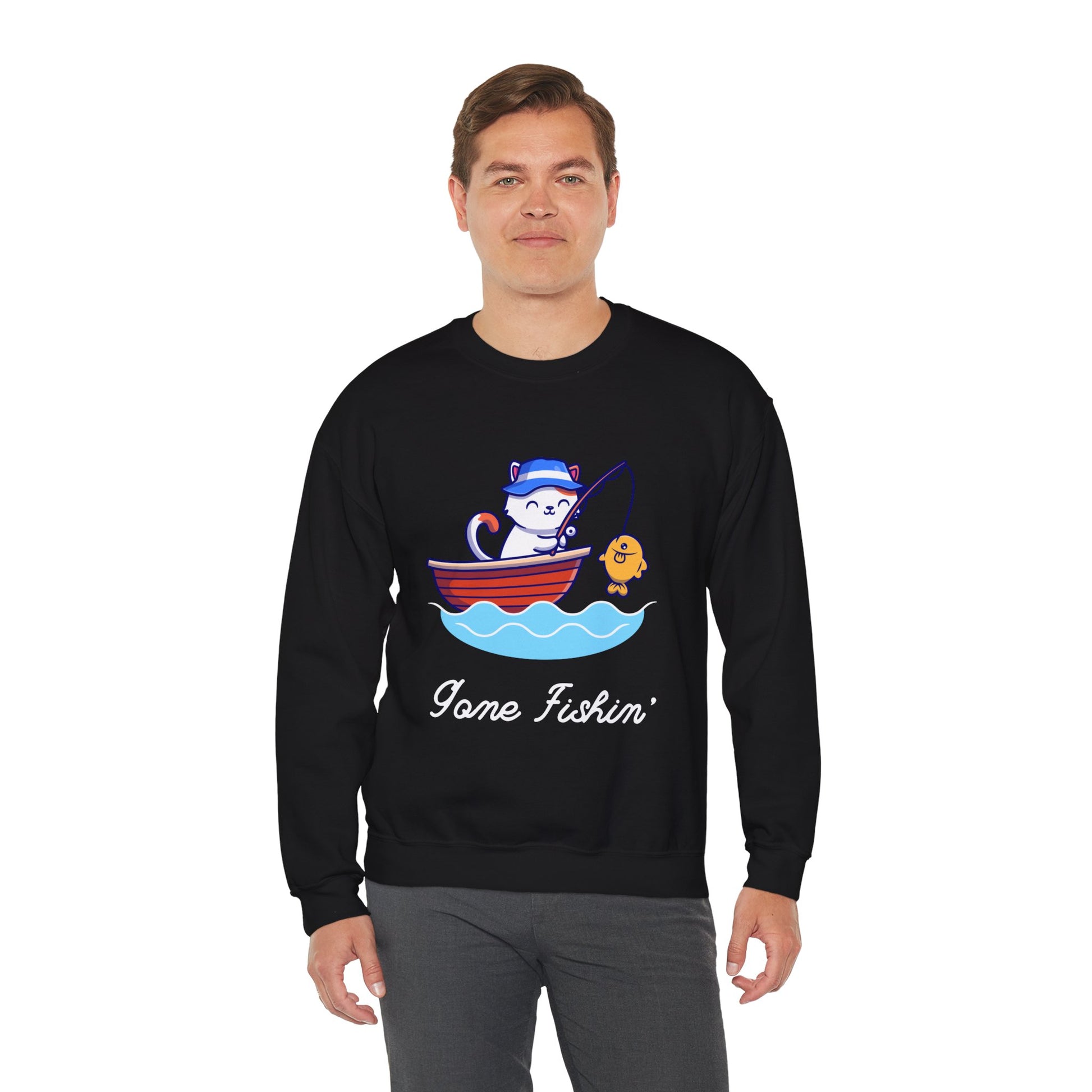 Gone Fishing Sweatshirt – laid-back vibes for cat-loving weekends.