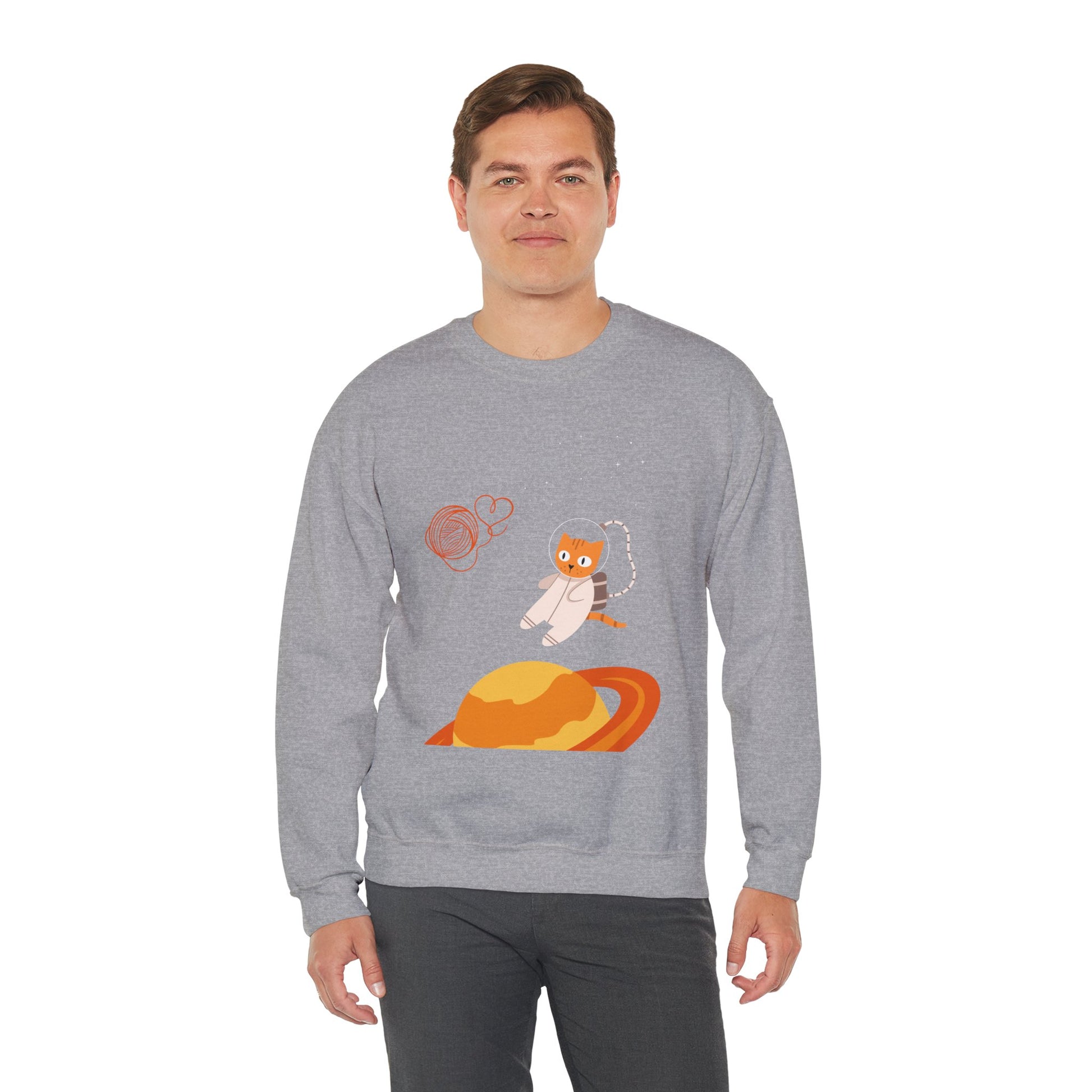 Lost in the Galaxy Sweatshirt – cosmic style for curious cat lovers.