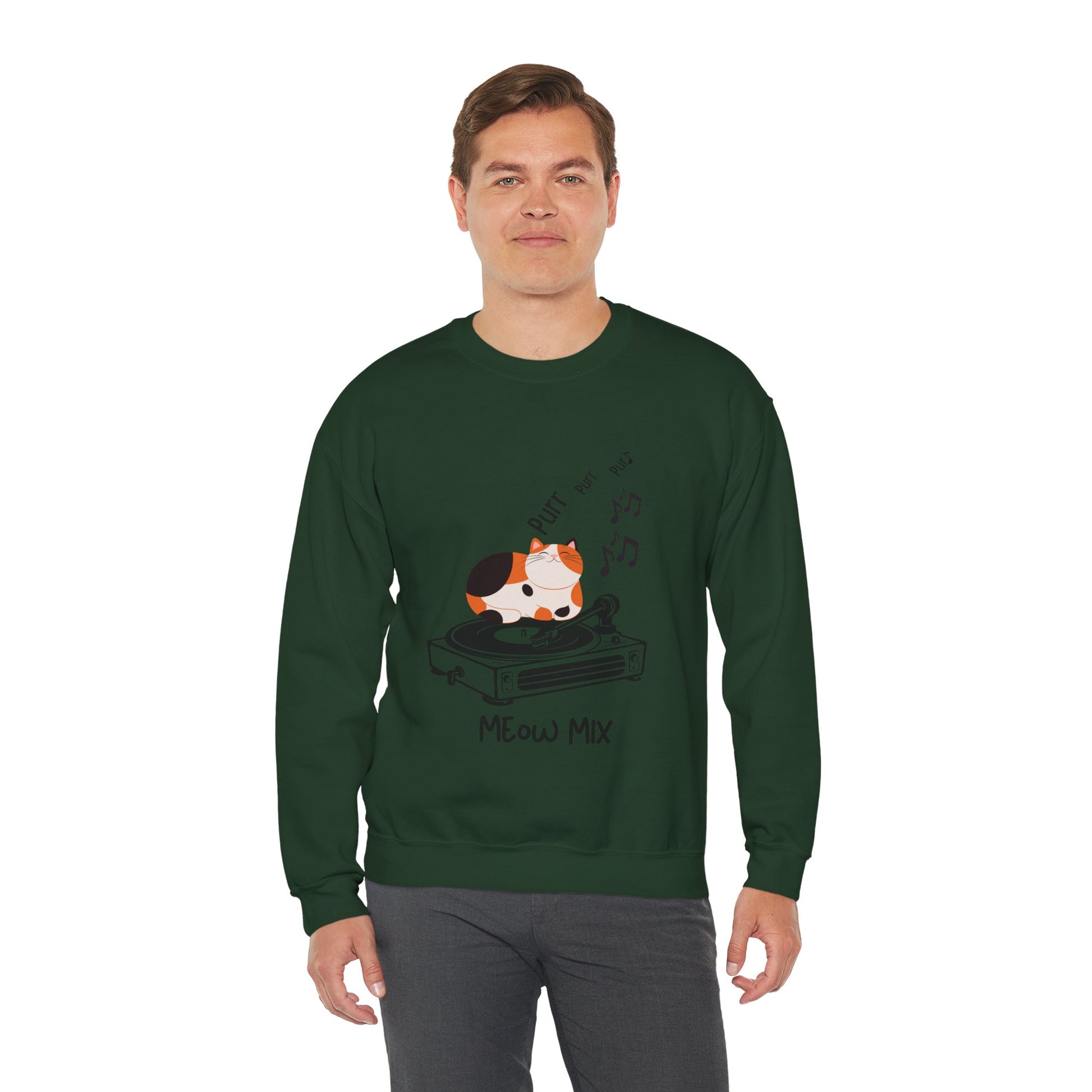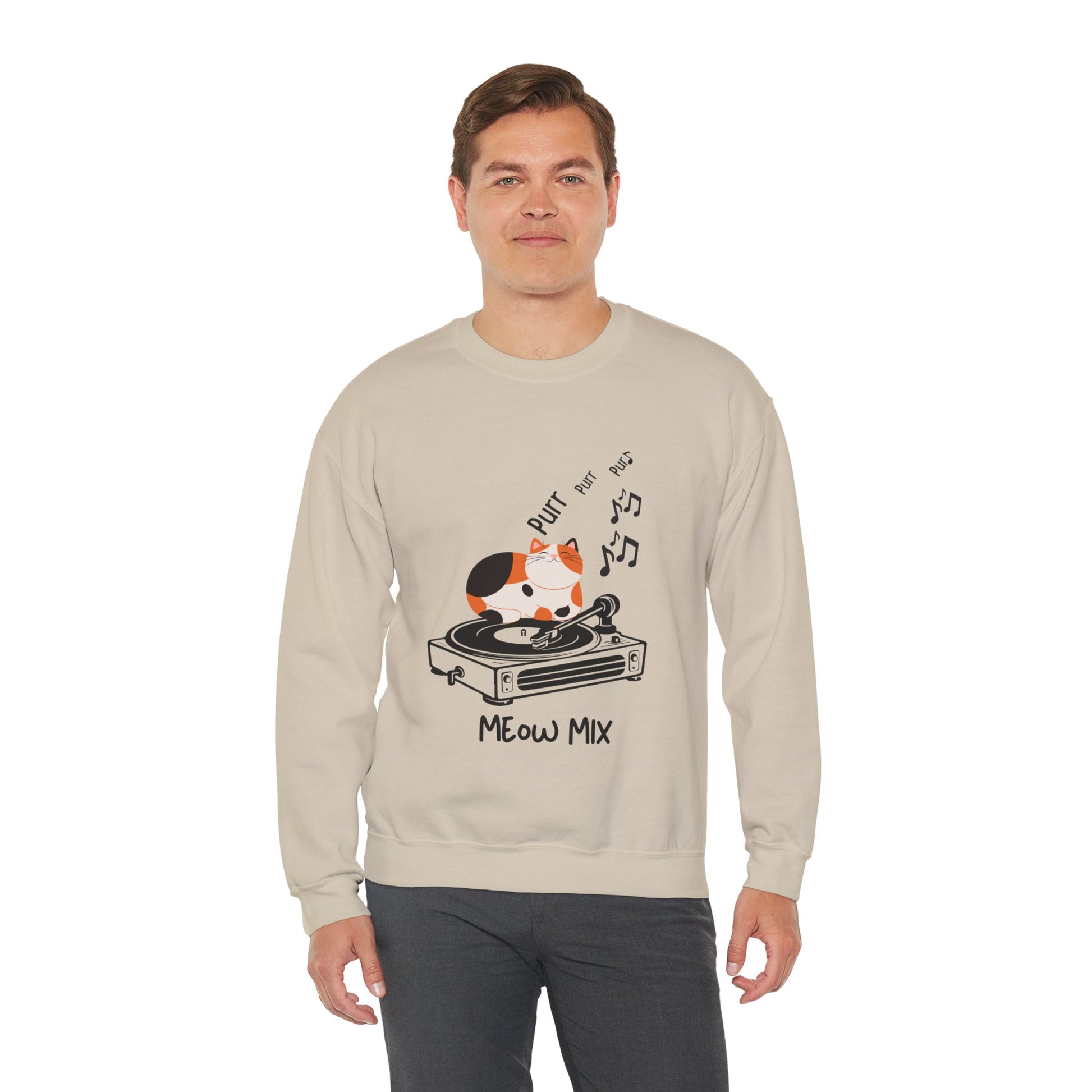 Meow Mix Sweatshirt – Cat on Record Player Crew Neck