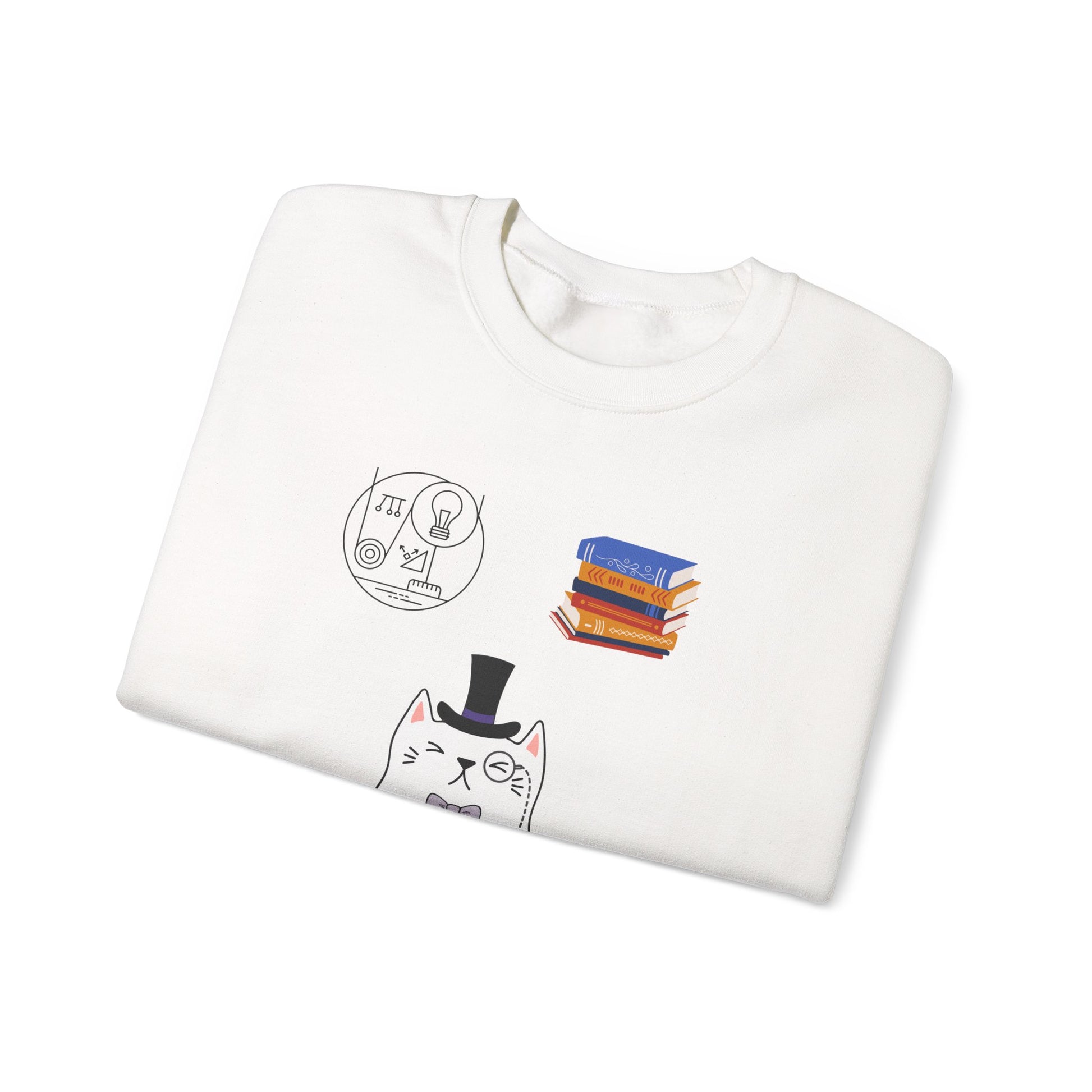 Show off your scholarly side with The Purrlosopher Crew Neck, where feline charm meets philosophical depth. This design features a monocle-wearing cat seated atop a stack of books—perfect for cat lovers who never stop learning (or lounging).
