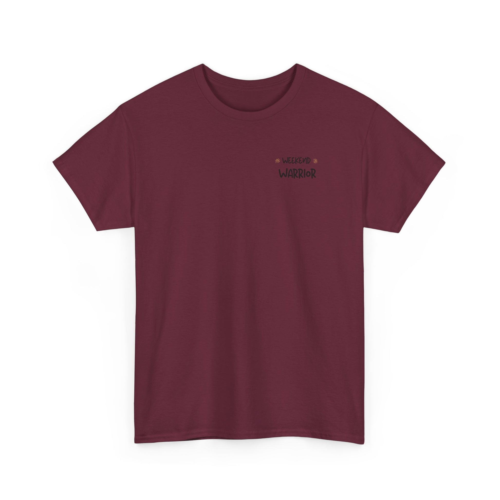 Pull on the Weekend Warrior tee and make every off-day a win—chores, coffee, and cat naps included.